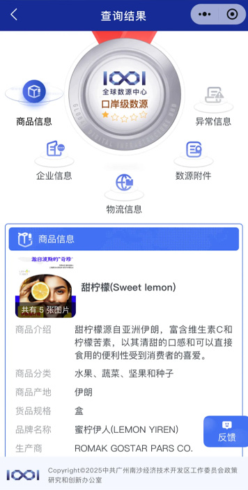 近日,中一农业科技(广州)有限公司依托全球数源中心,开展进口甜柠檬的全域产品数源应用,以数赋能,将不远万里的伊朗甜柠檬带到中国消费者的面前。目前,第一批甜柠檬已空运进口至广州,通过直播电商、线上平台等渠道进行广泛售卖。