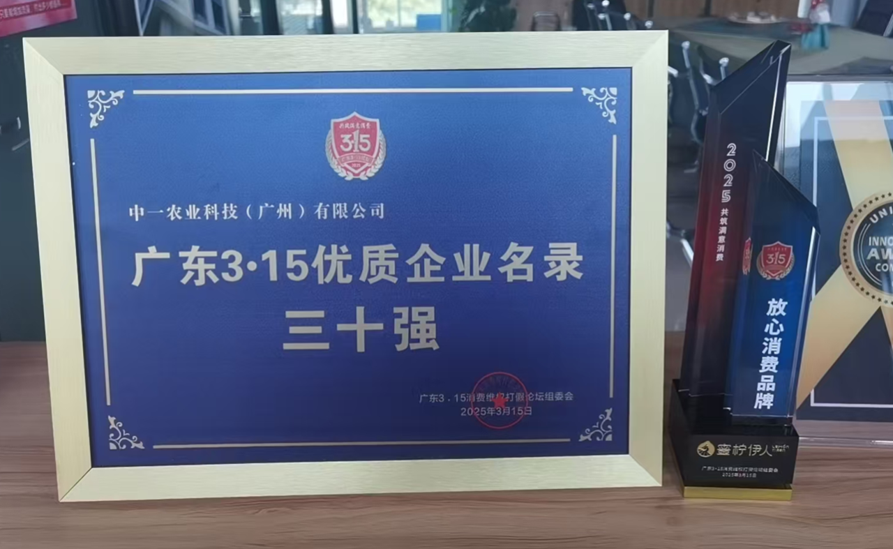 “广东3·15放心消费品牌”:这一殊荣的获得,得益于中一农业始终秉承的“品质为先、消费者至上”的核心理念。企业不仅严格控制产品质量,还通过积极响应消费者需求,赢得了广大消费者的高度信赖。连续入围这一榜单的企业,均需具备过硬的产品质量、卓越的管理水平和高度的社会责任感,而中一农业正是这些标准的典型代表。