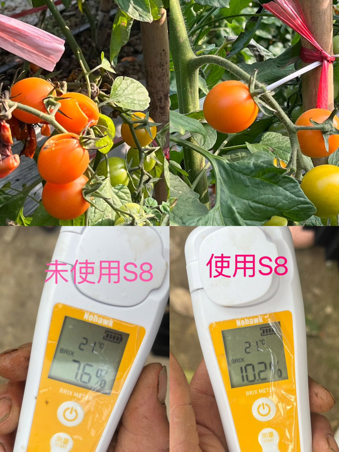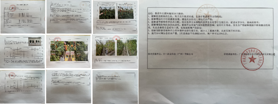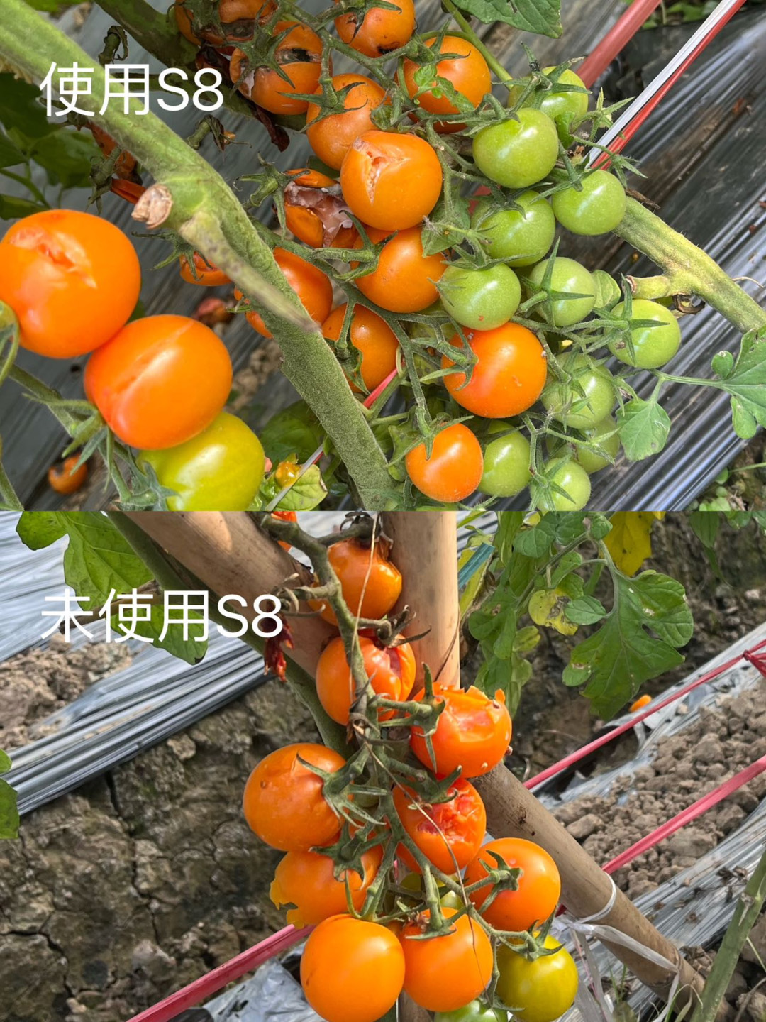 ③施用S8可增加番茄亩产量,2次采摘亩平均增收549斤,增产25%
